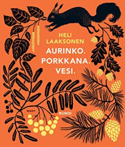 Kehotan ottamaan selvää miten tuo runo loppuu. Se on todella hykerryttävä! Niin on myös moni muu runo Heli Laaksosen uudessa kokoelmassa Aurinko. Porkkana. Vesi. Minulla oli ilo osallistua Laaksosen Aurinkokiarros-runokiertueen keikalle Savoy-teatterissa lokakuun lopussa. Olen aika huono lukemaan runoja, mutta Helin energinen, sydämellinen ja samaan aikaan nauru- ja itkuhermoja kutitteleva esitys sai heti samana iltana tarttumaan tähän kirjaan. Kun Helin lausunnan poljento oli tuoreena mielessä, näiden lounaismurteisten runoiloittelujen lukeminen sujui vaivattomasti, vaikka kyseinen murre ei niin tuttu itselle olekaan. Suosittelenkin nauttimaan nämä runot kahdessa formaatissa. Kirja on niin kaunis, että sitä ihailee mielellään samalla kun kuuntelee runot äänikirjamuodossa Laaksosen itsensä lukemana.